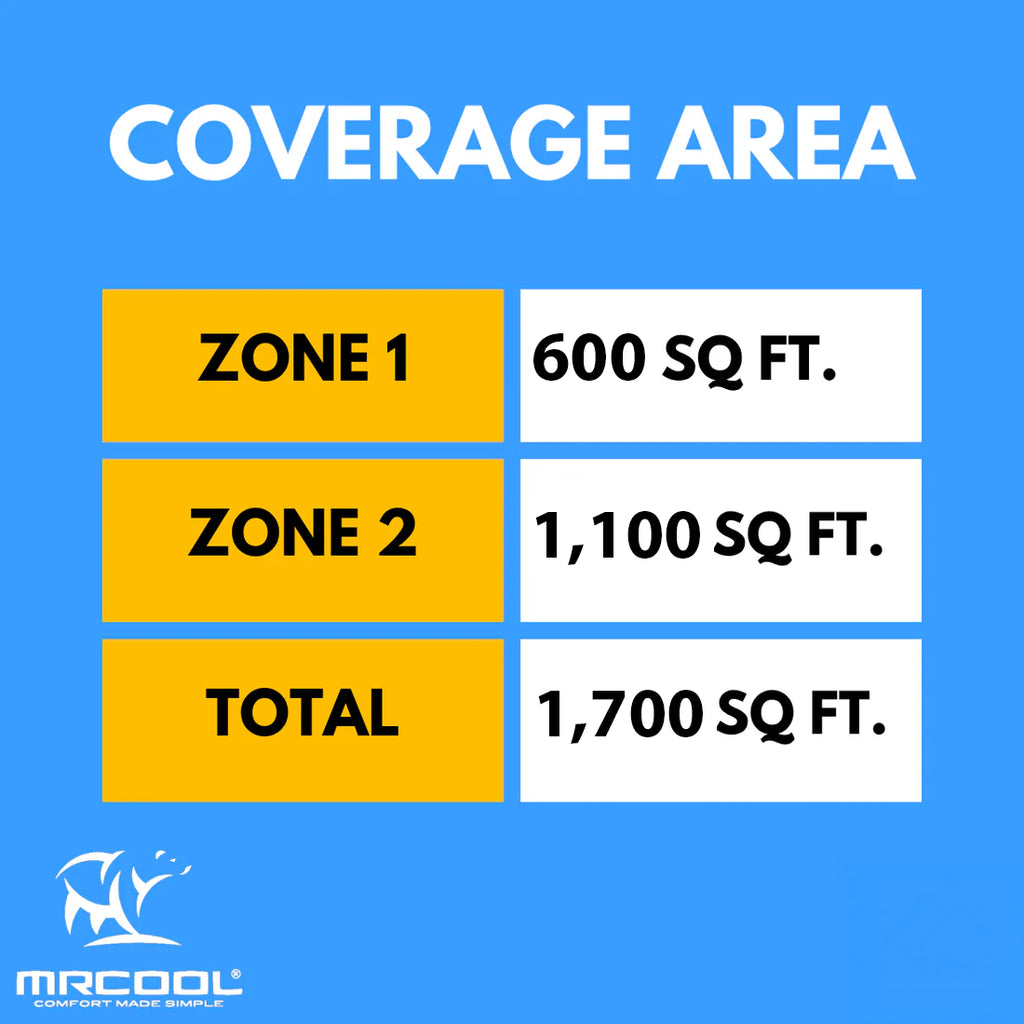 Heat or cool dual zones with the MRCOOL DIY Multi-Zone 27,000 BTU 23 SEER2 2 Zone Ductless Heat Pump Split System - 12K + 24K. This DIY Series multi-zone product features easy installation that requires no special tools or training. You'll save thousands of dollars on installation and you can get the amazing air comfort of your dreams due to the condenser’s 27,000 BTU capacity. The two indoor air handlers are 12,000 btu (600 square feet) and 24,000 btu (1,100 square feet). A heat pump by design, this ductless HVAC solution can run in reverse and pull in heat from the outdoors when in a heating mode. It comes with a 7 Year Compressor (Plus an optional lifetime compressor warranty), 5 Year Parts Manufacturer Warranty!
