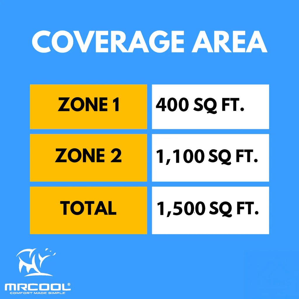 Heat or cool up two rooms with the MRCOOL DIY Multi-Zone 55,000 BTU 22 SEER 2 Zone Ductless Heat Pump Split System - 9K + 24K. This DIY Series multi-zone product features easy installation that requires no special tools or training. You'll save thousands of dollars on installation and you can get the amazing air comfort of your dreams due to the condenser’s 55,000 BTU capacity. A heat pump by design, this ductless HVAC solution can run in reverse and pull in heat from the outdoors when in a heating mode. It comes with a 7 year compressor warranty, (Plus a limited lifetime compressor warranty), 5 year parts manufacturer warranty!