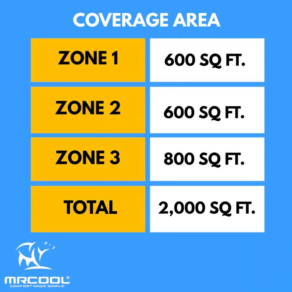 Heat or cool three zones with the MRCOOL DIY Multi-Zone 36,000 BTU 23 SEER2 3 Zone Ductless Heat Pump Split System - 12K + 12K + 18K. This DIY Series multi-zone product features easy installation that requires no special tools or training. You'll save thousands of dollars on installation and you can get the amazing air comfort of your dreams due to the condenser’s 36,000 BTU capacity. The indoor air handlers are two 12,000 btu (350 square feet) and one 18,000 btu (350 square feet). A heat pump by design, this ductless HVAC solution can run in reverse and pull in heat from the outdoors when in a heating mode. It comes with a 7 Year Compressor (Plus a limited lifetime compressor warranty), 5 Year Parts Manufacturer Warranty!