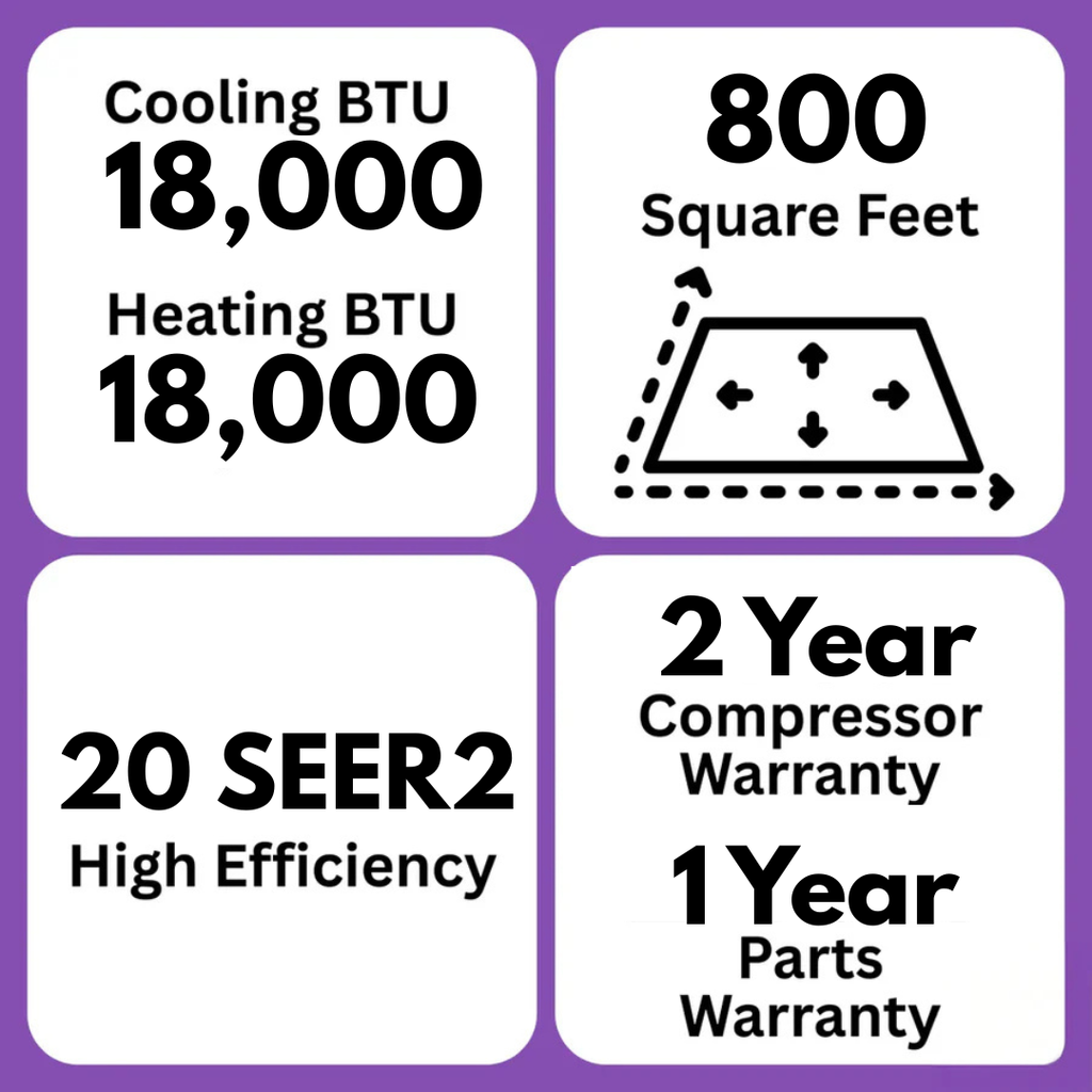 This system can be operated with your Apple or Android device via the SmartHVAC app, the included remote control, or your Amazon Alexa or Google Assistant. Feel confident in your purchase with the 1-year compressor warranty and 2-year parts warranty. This is an easy-to-install system that can provide exceptional heating and cooling for your home or office.